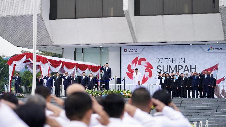 Direktur Utama PT Pertamina (Persero) Simon Aloysius Mantiri memimpin jalannya upacara Hari Sumpah Pemuda ke-97 di Kantor Pusat Pertamina, Jakarta, Selasa, 28 Oktober 2025. Dok. Pertamina